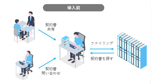 総務課では2名体制で契約書管理を行っていましたが、業務負担や各部署による個別保管などの属人化も大きな課題。 “手元に置いたほうが安心”という考えも根強く、全社的な一元管理が難しかった。