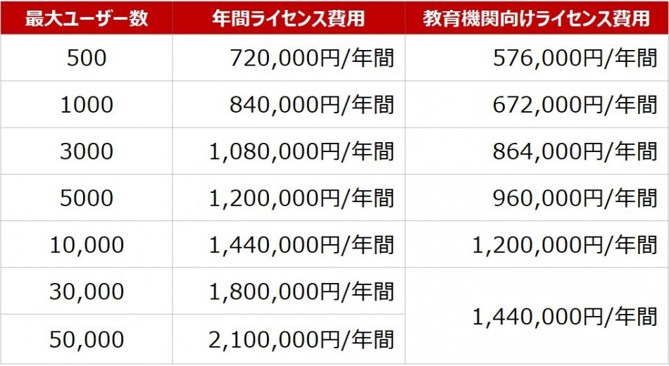 ※年間ライセンス費用に保守サポートも含まれています(別途保守費用は必要ありません)。